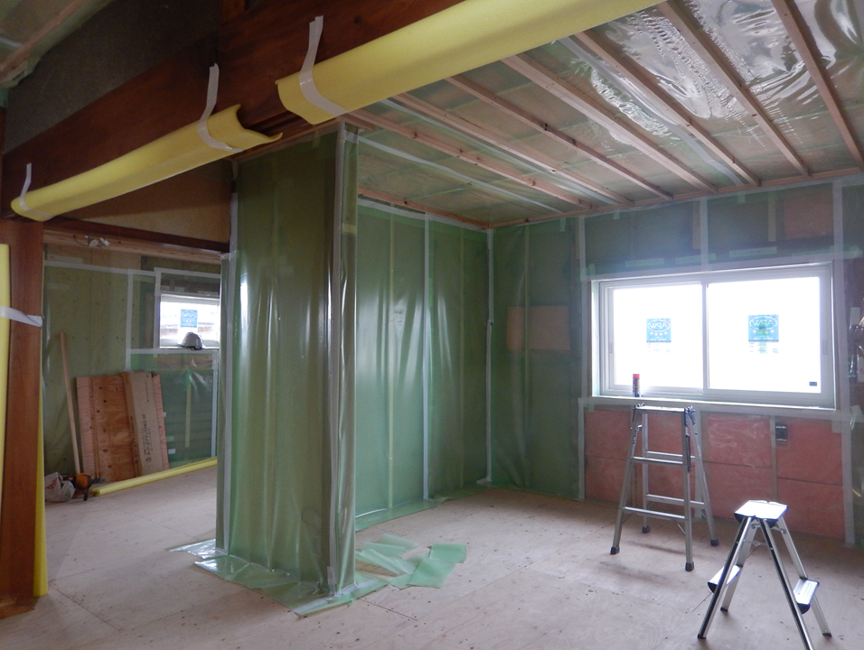 気密改修![]() 構造用合板と気密シートを施工。 |