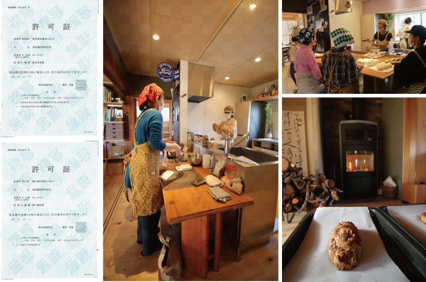 写真:レストラン、パン教室の様子。飲食店営業許可・菓子製造許可を取得済。