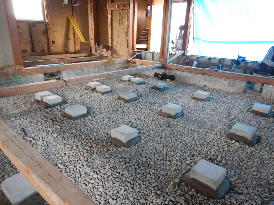 ニュータウンから、少し外れた敷地環境。農村風景が豊かに広がる田園風景の中、築55年の古民家。古民家といっても、構造は在来工法で施工されていました。ただ、外周基礎に関して、独立基礎で施工されているエリアもあり、基礎工事に関しては規模の大きな工事となりました。
