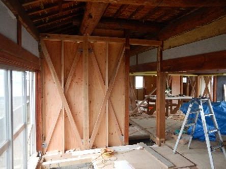 工事前に、インスペクションを行い耐震診断、耐震計画を行った。