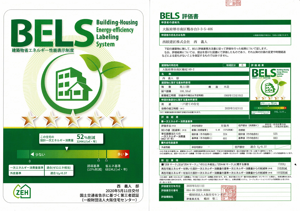 (BELSとは、 Building-Housing Energy-efficiency Labeling System 建築物省エネルギー性能表示制度 の略称で、第三者評価機関が評価し認定する制度です。5段階の★の数等で表示され、最高は五つ星。)