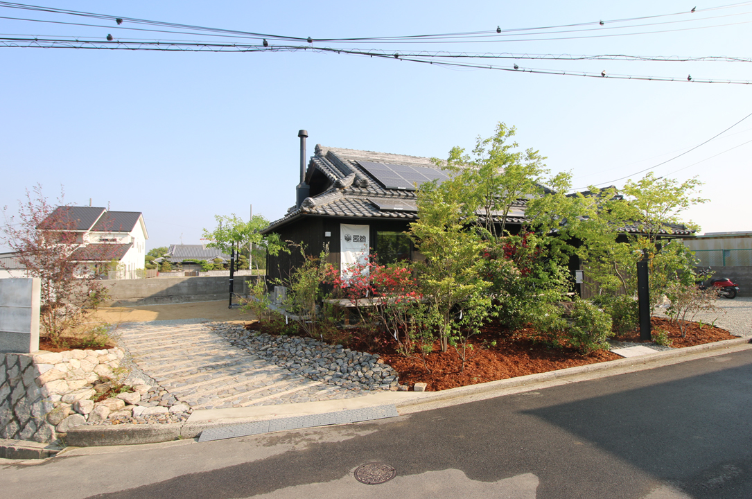 南の前面道路に面した雑木林。その中をくぐり抜けるようにアプローチする。街に対してオープンでありながら、旧家が数多く集まる地域の景観に溶け込む外観デザイン。瓦と板壁、一部左官という、建築当初からの景観を変えることなく、快適な住み心地の家に生まれ変わった手法は、近隣住人の方からの関心を集めている。