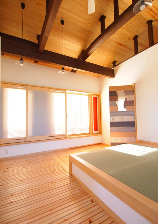 2階中央の床は、スノコ状になっており採光・通風が出来る。夏の夜は天窓を開け廃熱としても利用する。中央の「トルコ茶の間」は南先生のトルコ伝統住宅のイメージ。