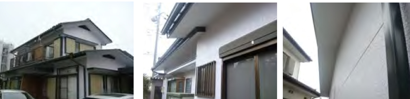 ![]() 下屋の妻(東側)にも換気口は造られていたが西側には換気口はない。北側、西側の軒天にも換気口はなく、白色腐朽菌の原因は通気性が無いためと思われる。 |
