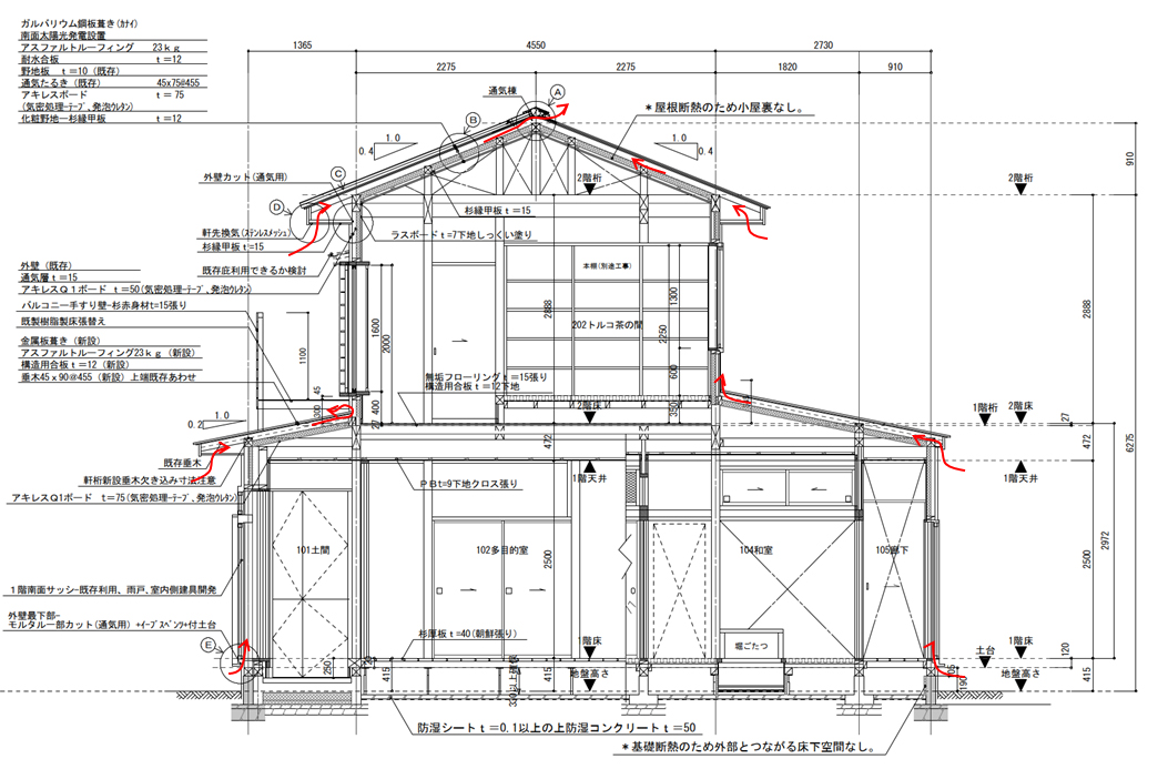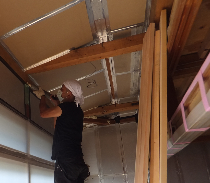 半身通気工法 ![]() 通気と気密を確保するために丁寧な施工を行った |