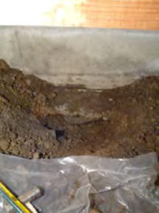 床下は、既存床を 合板+無垢板を張るリフォームをした部屋の床下で、白色腐朽菌がみつかった。また、玄関脇の土台で多数の蟻道があり、土台をつつくと簡単に割れて中は激しく白蟻に喰われていた。