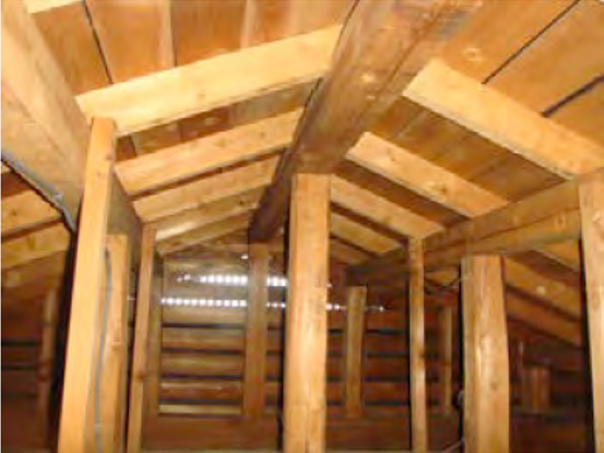 小屋裏![]() 小屋裏の状態はとても良く、妻の換気口から光りが入る。 |