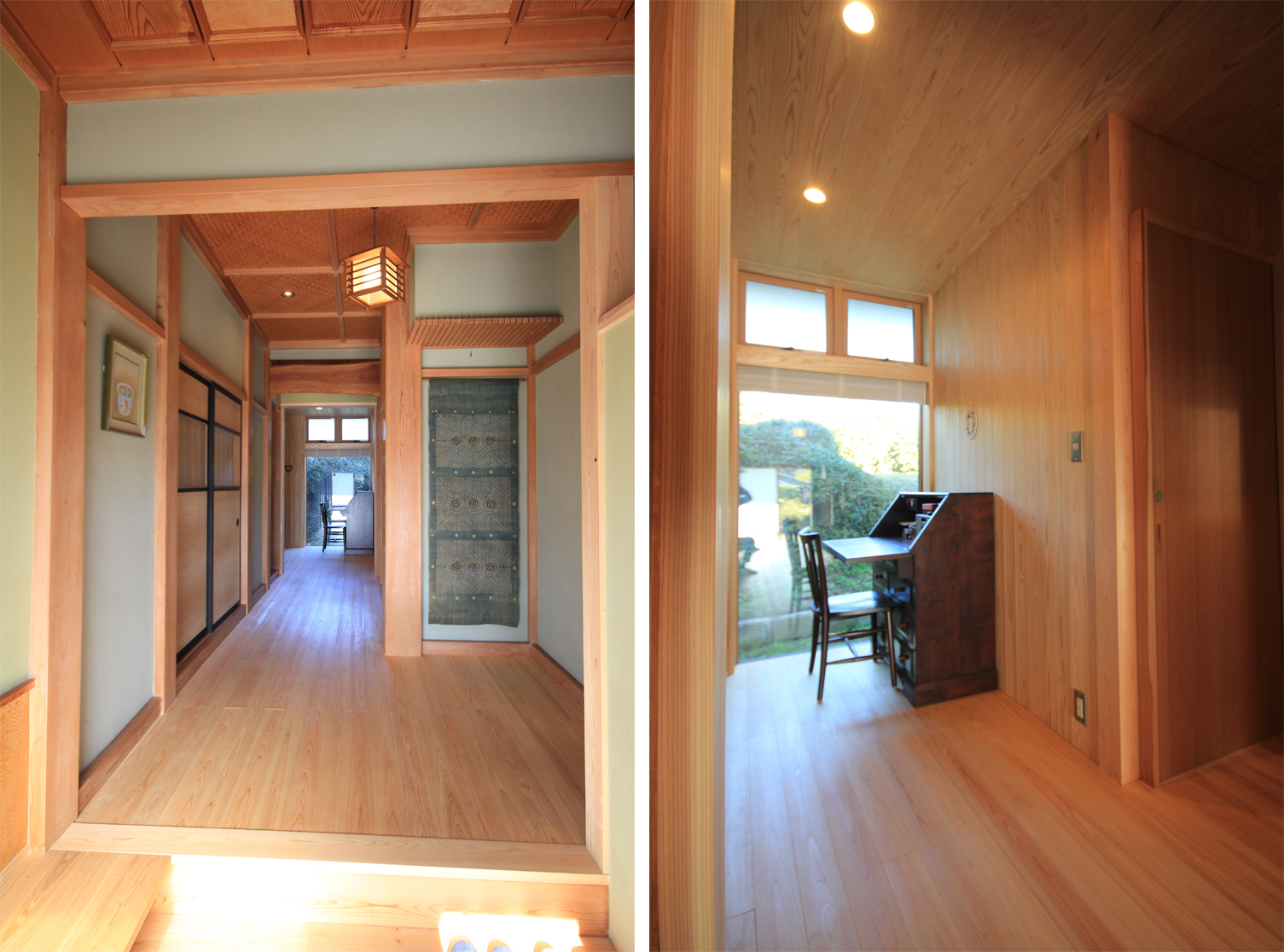 新築の住宅設計と施工の仕事が多く、改修の実績が多くは有りませんが、今回の様な地元の大工さんがつくった住まいの改修は初めての経験でした。見えている柱や梁、造作などから大工さんのこだわりを感じ、お母さんも自慢の住まいだと言うことが伝わってくるお宅でした。老朽化しての改修と違い、新しいライフスタイル(娘家族との同居)に合わせての改修と言うことで、打合せ当初は耐震や断熱改修についての希望は無く、間取りや設備、内装を新しくしたいという要望が強くありました。打合せを重ねる中で住まいの診断の重要性を話し、だんだんと興味を持っていただきました。住まいの診断書の報告に行ったとき、家族皆耐震診断の結果に驚き、特にお母さんは、“太い柱を使ってしっかりと建ててもらったのに・・・”とショックを受けていました。一般の方にとっての丈夫な家、立派な家の考えと、建築物としての実際の性能には大きな開きがあり、住宅医の仕事として伝えていかなくてはいけない大切な事だと改めて感じました。改修工事が完成すると、とても暖かく明るくなって、工事をお願いして良かったとお母さんから嬉しい言葉を頂きました。住まいは毎日の生活を送る器であると同時に、命を守るシェルターとしての役割もあります。今後この住まいに、新しい家族と共に、お母さんが長く安心して暮らしていただける事を願っています。