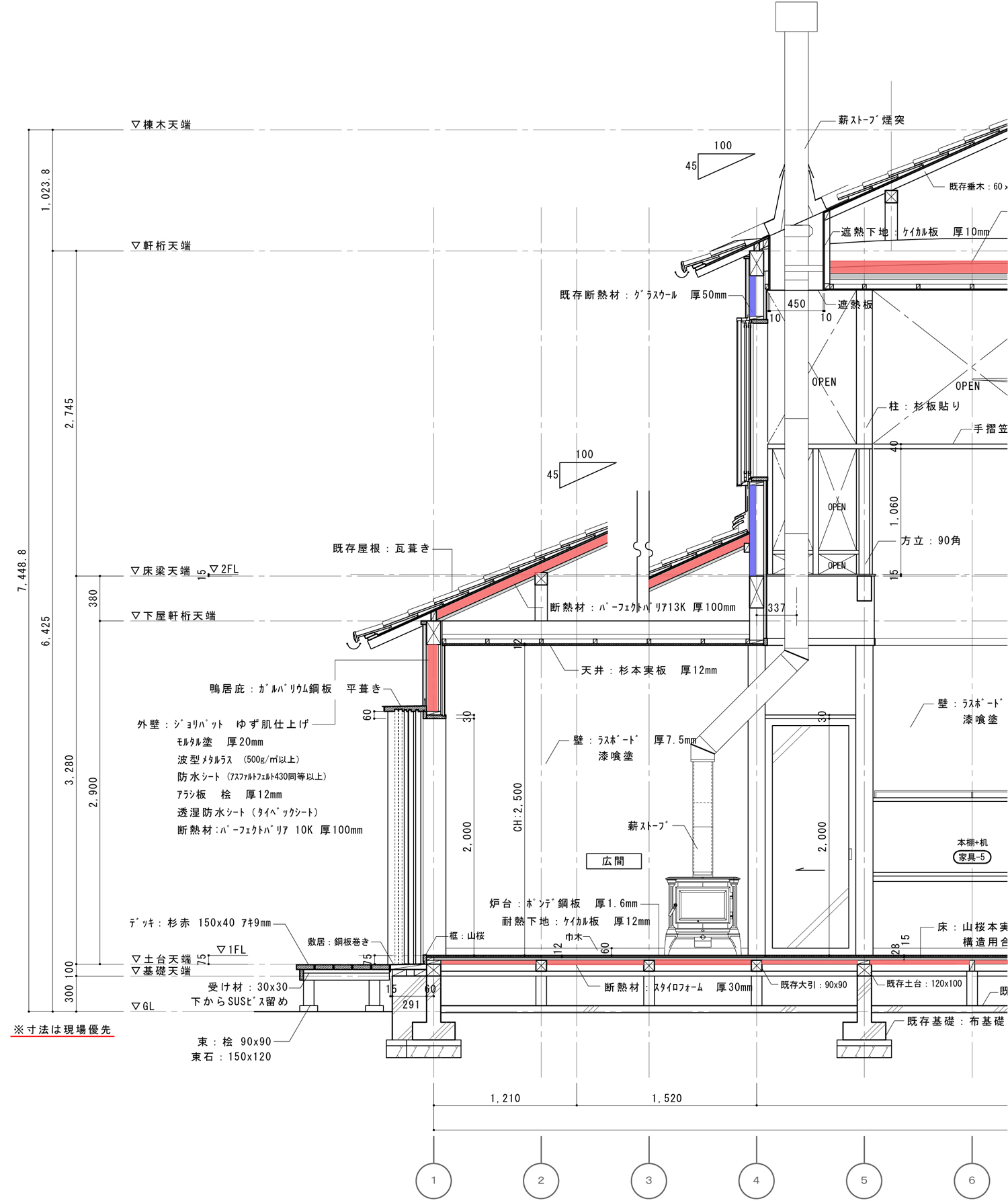 改修範囲を限定しての計画だったため、耐力壁の配置は改修内容や予算を考えながらシビアに行った。