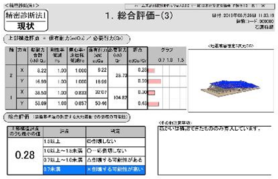 調査後診断レポート報告に伺い、現状を説明した。特に耐震性については驚かれ、ショックを受けていた。断熱性については今までの慣れもあり必要性について意識されていなかったが、数字を見ることで性能を自覚し、向上への意欲が高まった。