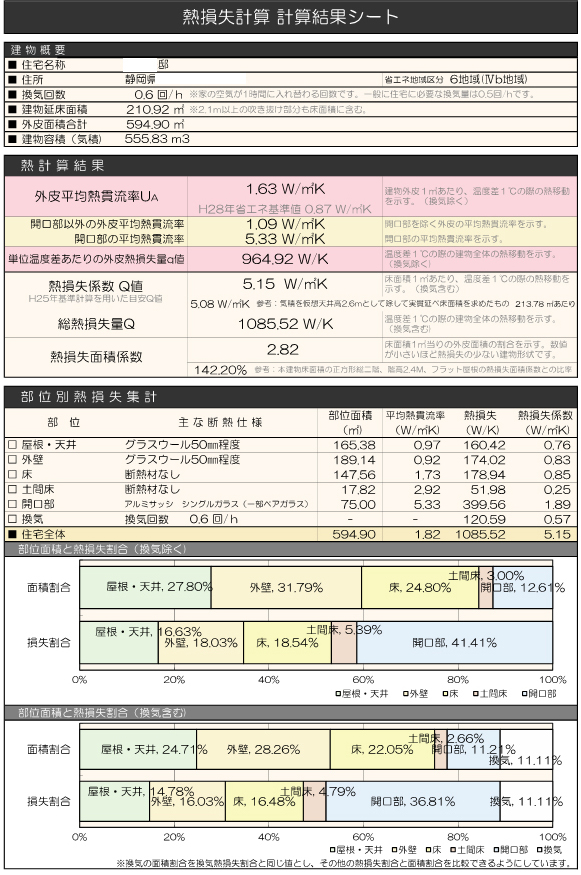 部位面積と熱損失割合(現状)環境デザインサポートツール抜粋![]() |
