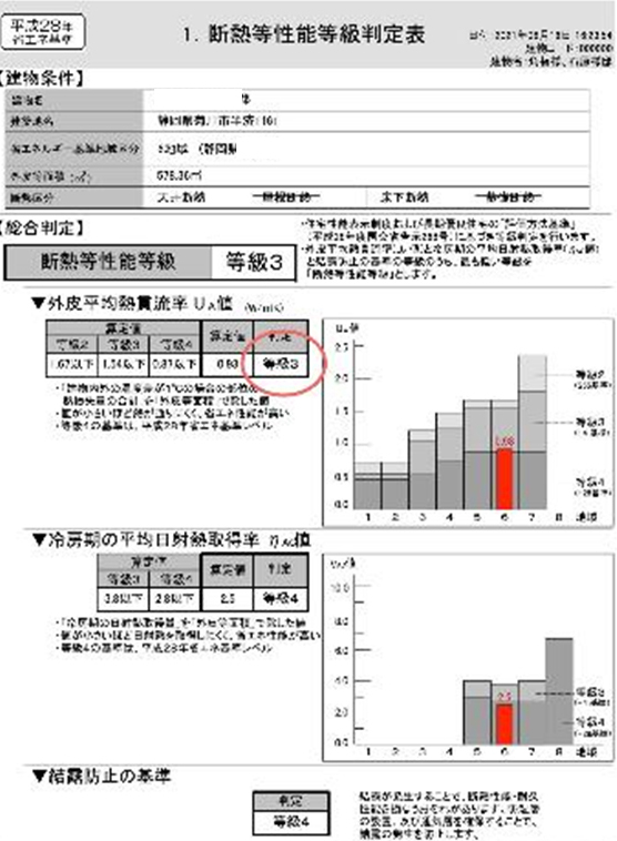 改修しない壁、窓も多く、全体でUA値0.93w/㎡K(等級3)となった。