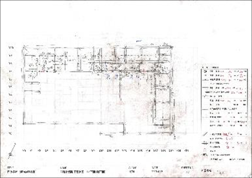 調査現場で情報をまとめる 野帳作りはこれからの改修計画をたてる上でとても重要 な作業。現場で描く能力は日頃の設計の力が試される。見えない所も経験をもとに予測を立て、正確な野帳を作っていく。