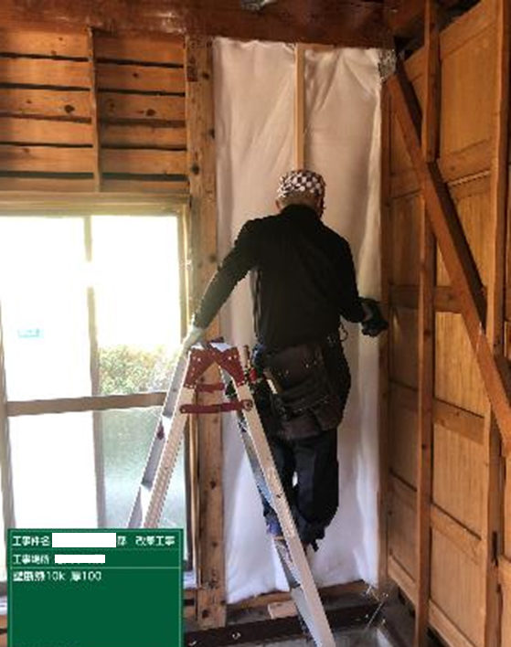外壁はそのまま利用するため、断熱材は壁内部からの施工となった。