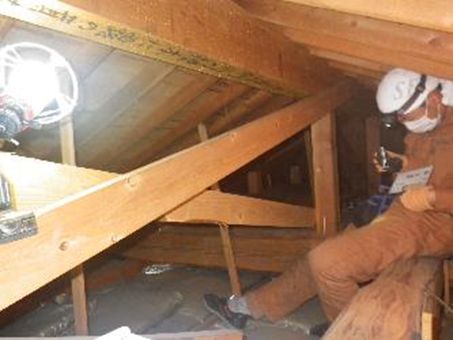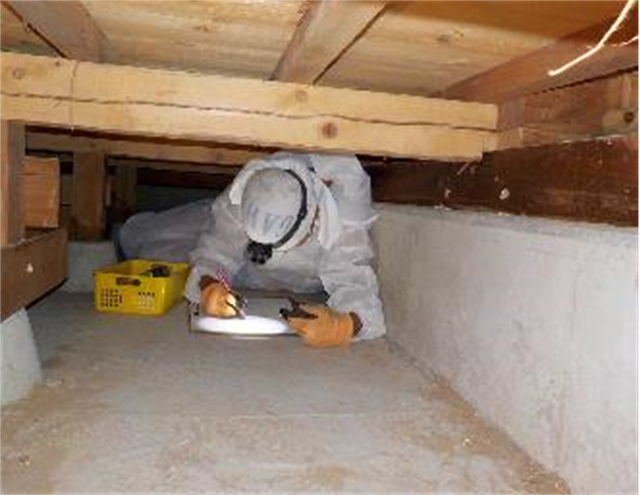 住宅医チームと共に。床下、屋根裏、設備、建具、傾きなど、二日間に渡り詳細な調査を行なった。