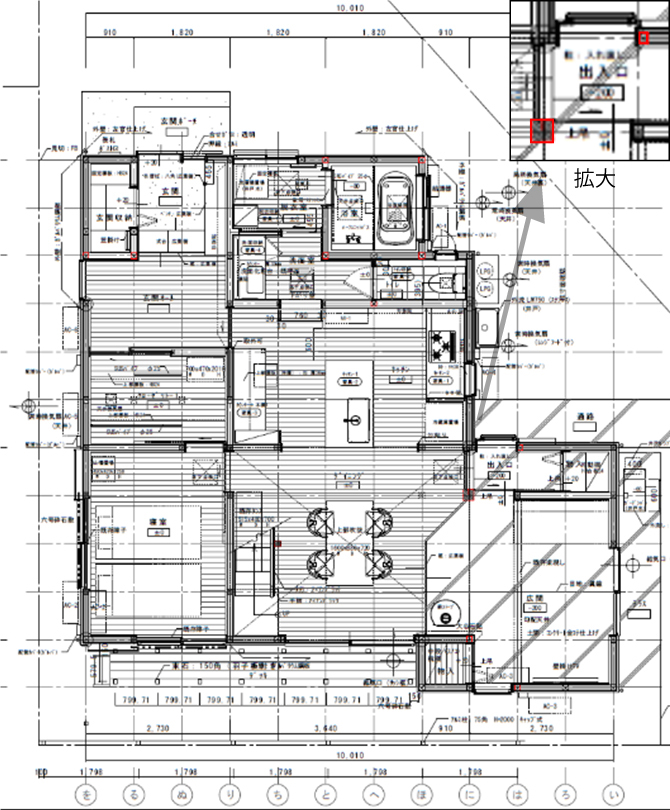平面図でのポイントは、柱の追加や移動、撤去をわかりやすく示すこと。