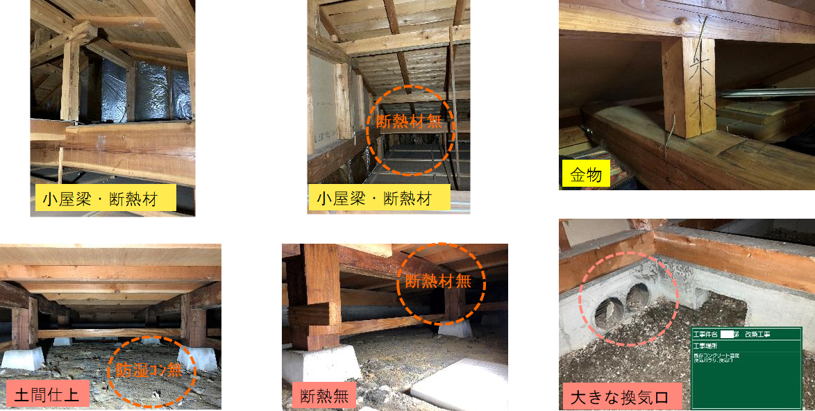 雨漏り、腐朽等は見られなかったが、金物や断熱材が不十分。