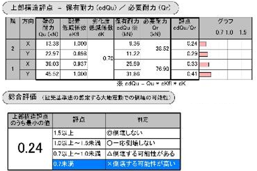 上部構造評点は0.24「× 倒壊する危険性が高い」 |