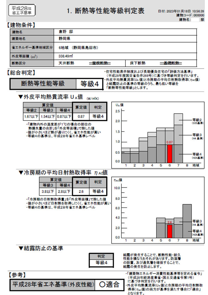 断熱性 [現状] 断熱性 判定は H28年省エネ基準は「 × 不適合」ホームズ君 |