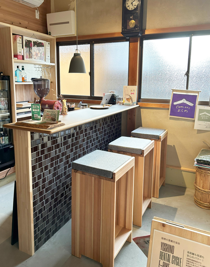 ”ゲストハウス空(くう)” は、airbnb(アメリカ発祥の民泊サイト)に登録してからは海外からのお客さまが増えました。海外組は玄関を開けて「beautiful!」と言って下さります。ゲストハウスは長期滞在者の方も利用しやすいプランがあり、吉野で家をお探しの方なども利用されます。町の外から来られる方と地域と場所を繋ぐ ”Come onよしの” の活動や、自分のお店を持つ前のチャレンジで 飲食店営業・菓子製造業許可を取得している ”こけのもり” のキッチンを利用される方もいます。