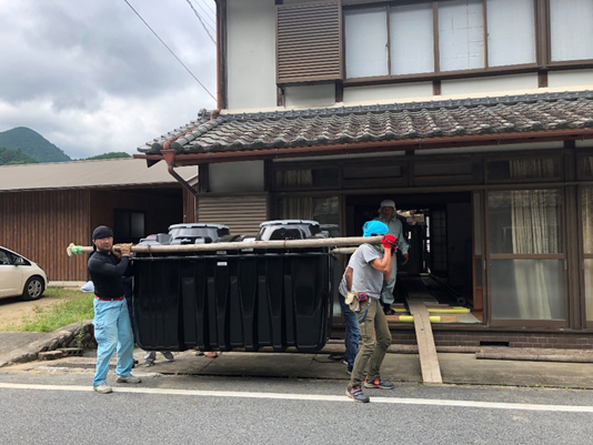 ![]() 地域の水道屋さん達が協力し合い 担いで搬入 |
