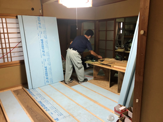 ![]() 床に熱材の施工 |