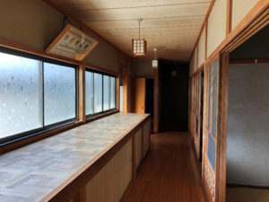 廊下の窓下には大きな収納(布団入れ)がありましたが使いにくく撤去しました。収納撤去後 床の施工が必要となりましたが、南側廊下はゲストのサブリビングとなりました。床には吉野杉を施工。