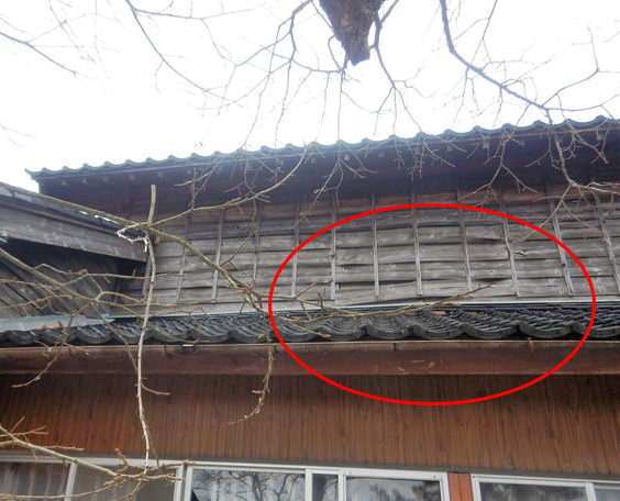 ![]() 外壁:板張り めくれ |