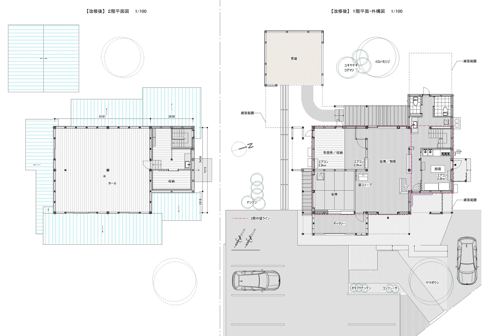 ![]() 改修後 2階 1階平面図 平面図 クリックで詳細平面を表示 |
