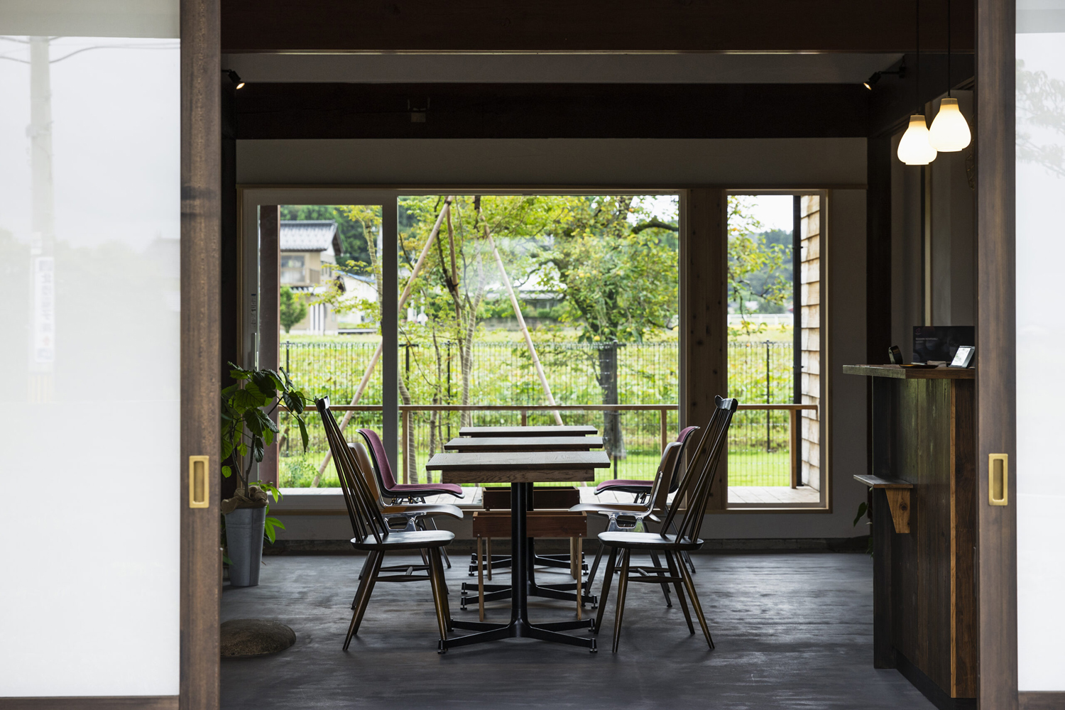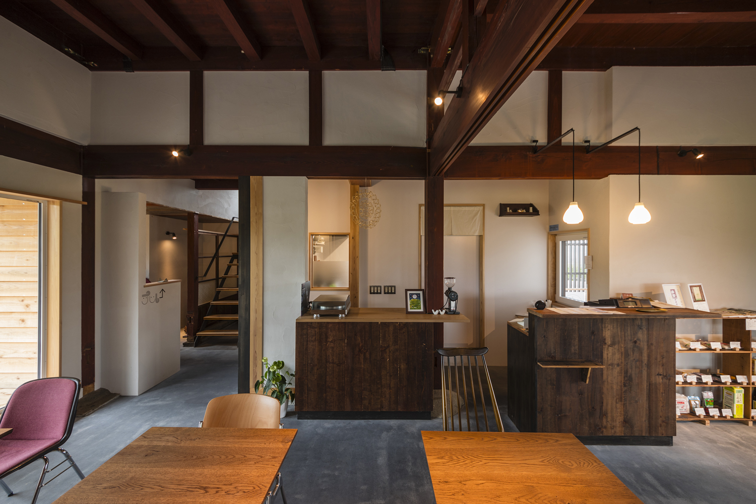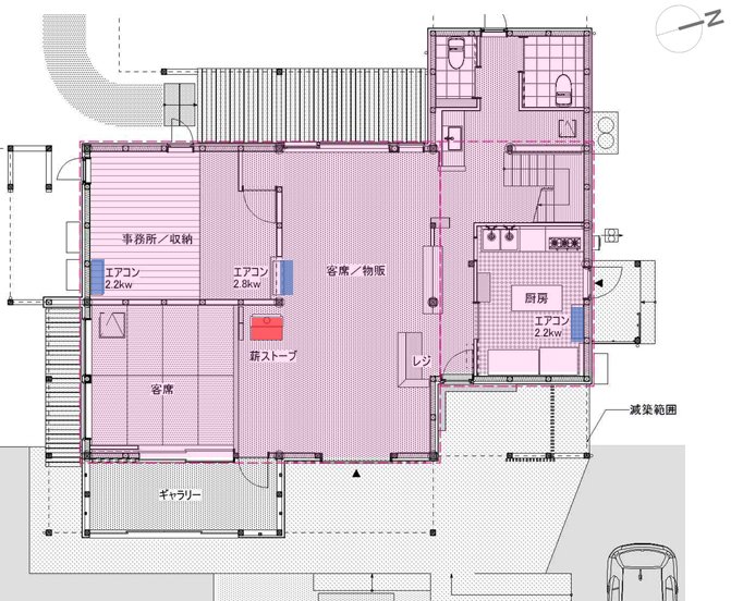 | 【施主の要望】 ■ ・発酵食品を使ったドリンク、フードの提供 ■ ・食品や雑貨の販売 ■ ・発酵食のワークショップ、セミナー ■ ・昔ながらの食生活を伝える落ち着いた空間 ■ ・薪ストーブを使いたい |