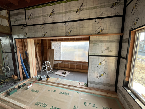 ![]() 壁セルロースファイバー充填後可変透湿気密シートで気密をとる |