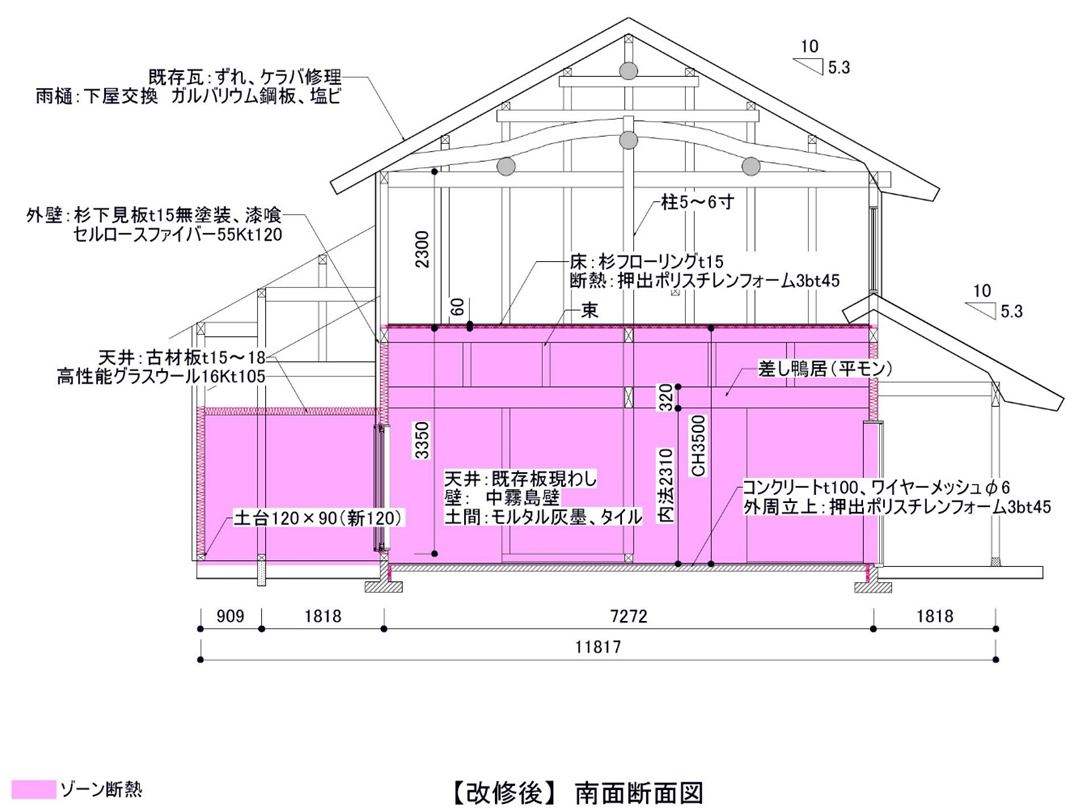 ![]() 改修後 立面図 |