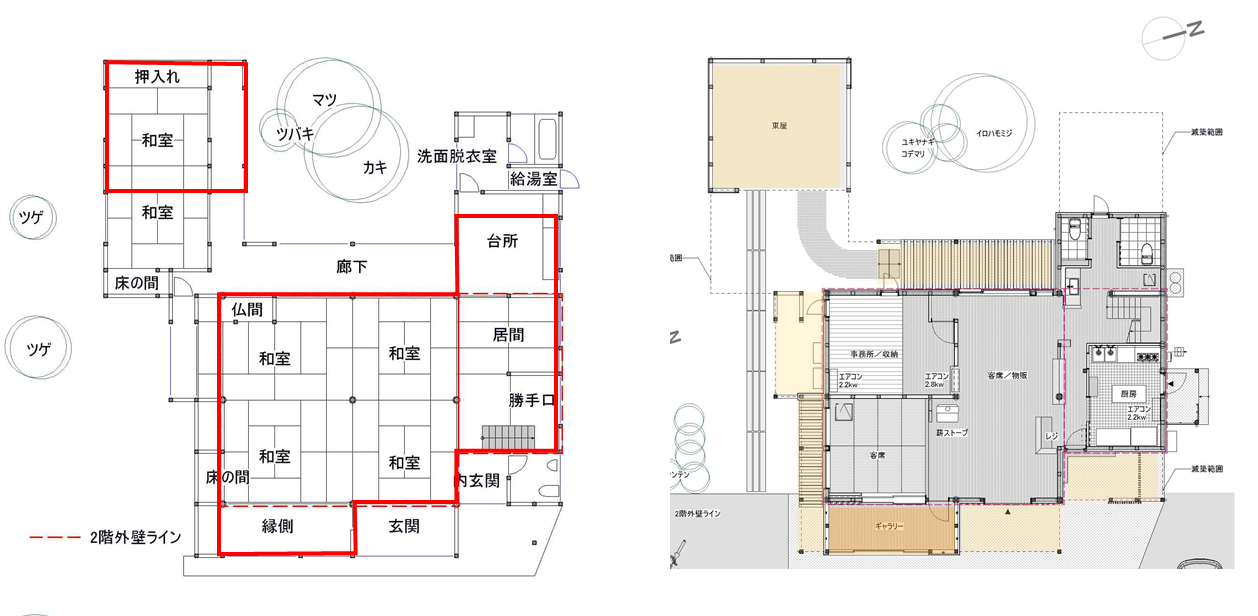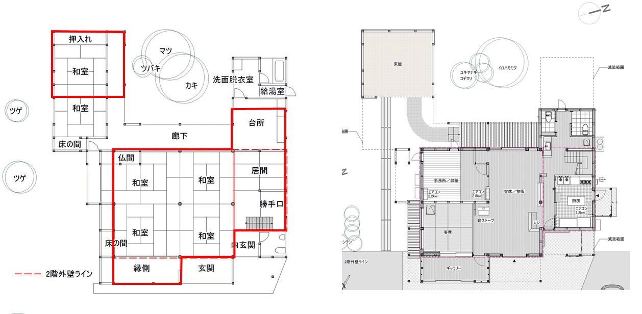 劣化が激しい増築部を解体減築