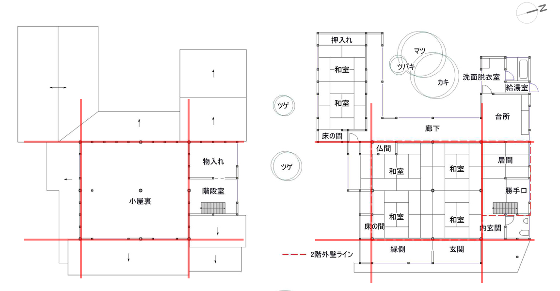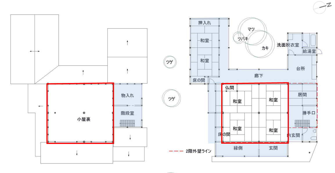 ■→ 2階は耐震改修の範囲外