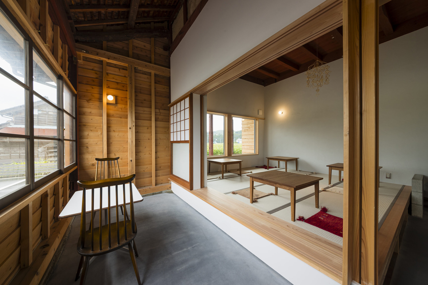 中古住宅の購入についても的確なアドバイスをされるフラグシップさん。オーナーさんも安心して、この古民家を購入された事と思います。築68年、劣化が進む古民家を適切に減築し、建物の美しい意匠がいかされた改修事例です。合理的な減築計画により、1階 飲食店部分の耐震性と温熱環境が低コストで改善されました。また、建物オーナーのコンセプトでもである「からだにやさしい」が、建材の再利用や心地よい空間で表現されている様に思います。