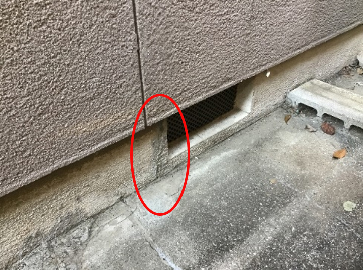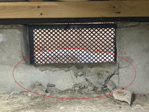 床下 床下 外部から確認出来ない箇所にクラックあり |