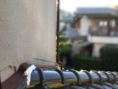 外壁や基礎にクラックを多数確認した。屋根瓦は震災後に葺き直されている。