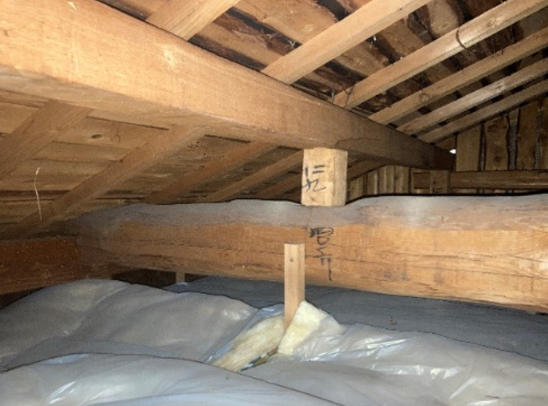 建物に若干の傾きがあったが、構造材に顕著な劣化は見られなかった。