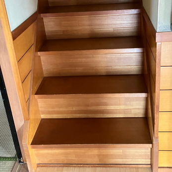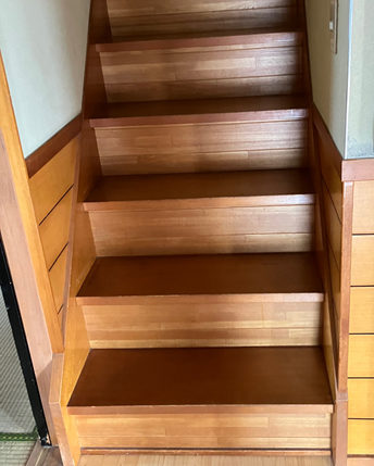 ●階段は手摺がなかったので取付を行い、階段もカバー工法で貼る際に滑り止めを設けた。