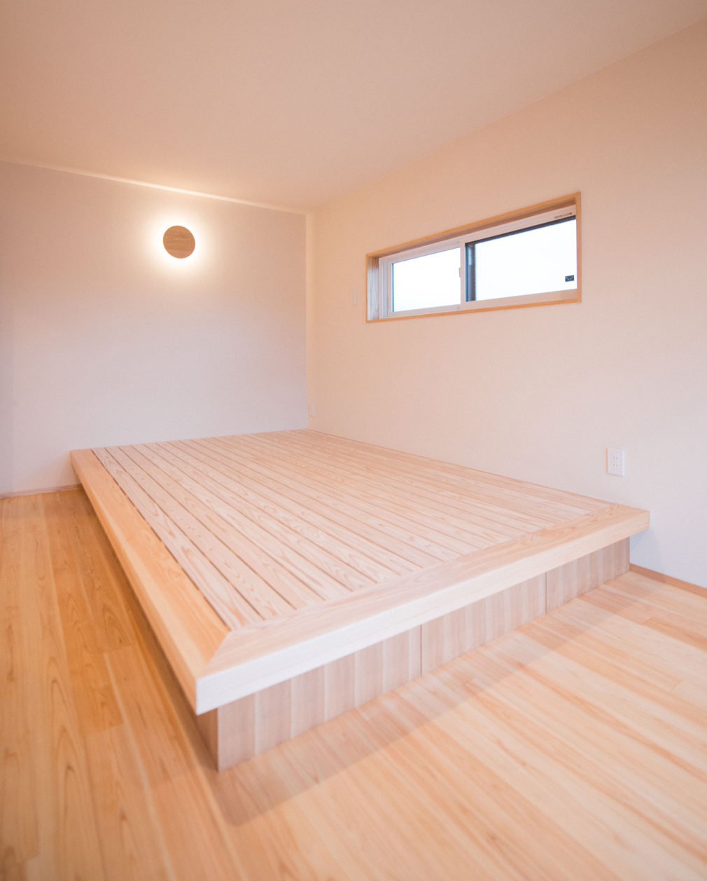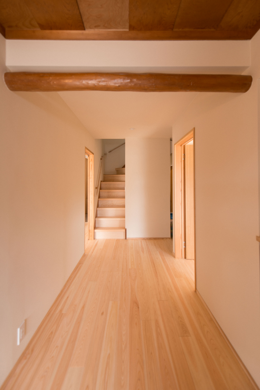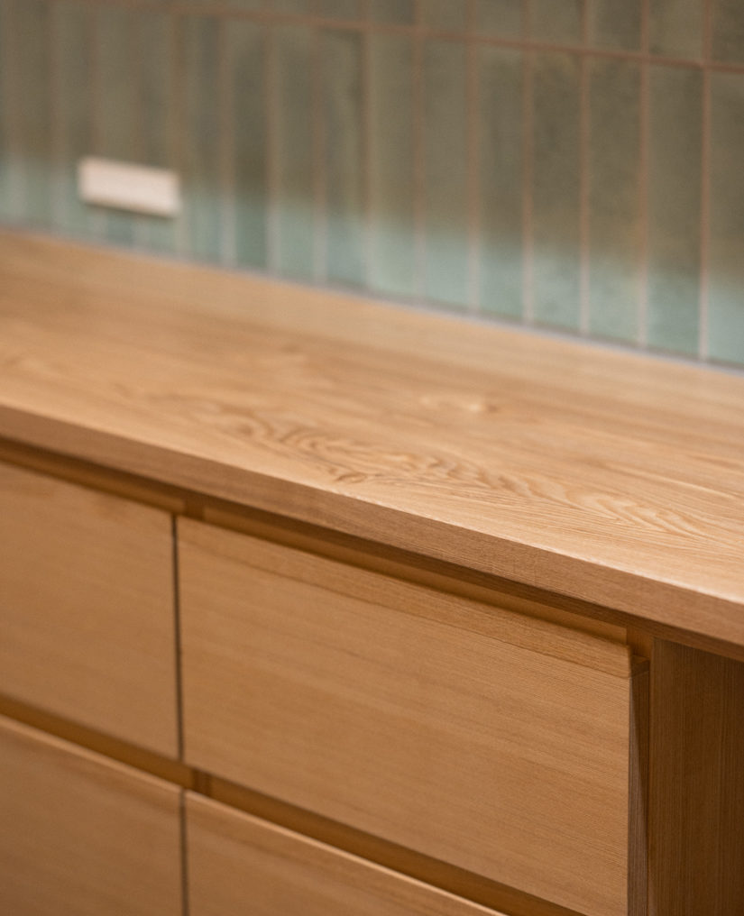 ●自然素材を感じられるように、床材に桧(静岡県オクシズ材)を提案した。玄関やカップボードは造作の物を作った。