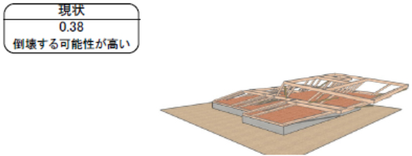 Before![]() ![]() ![]() 上部構造評点 0.38「倒壊する可能性が高い」 建築基準法の想定する大地震動時を想定 |