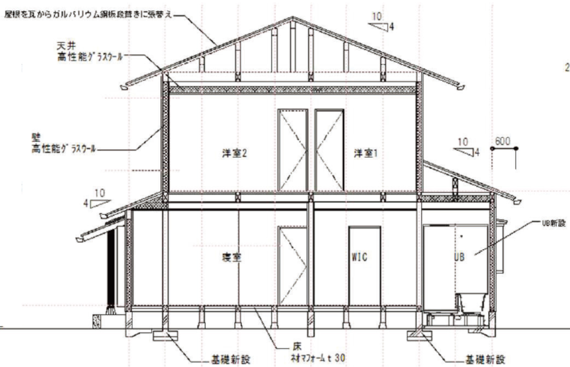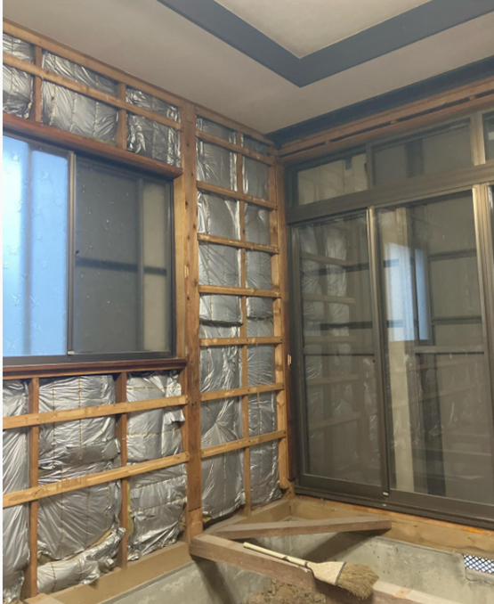 ● 壁面:新しく筋交いを施工した壁を作る際に、高性能グラスウールを施工。
