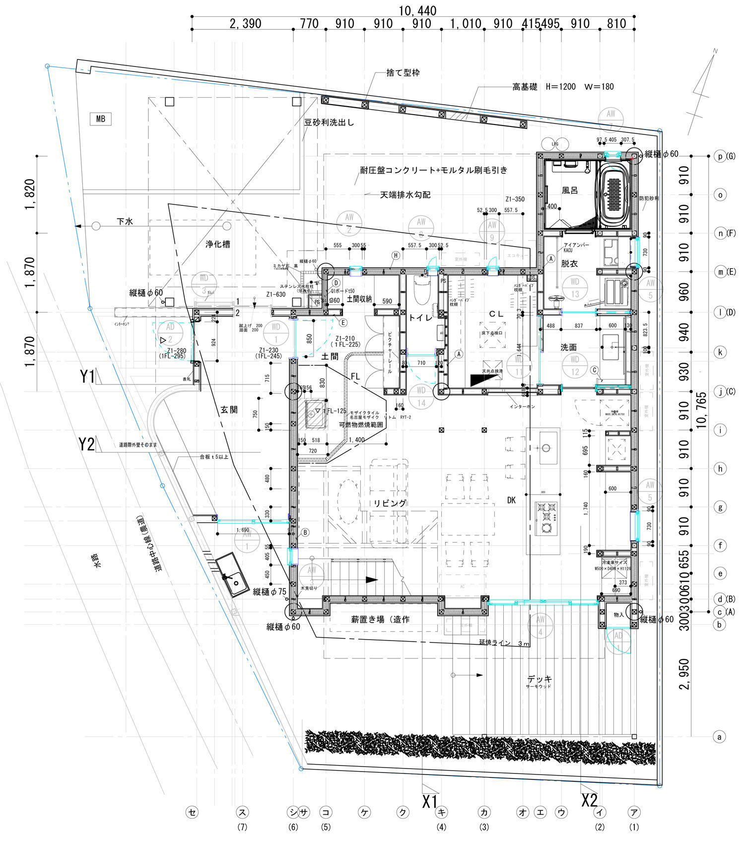 基礎断熱:(A種押出法ポリスチレンフォーム保温板3種b)t=50㎜