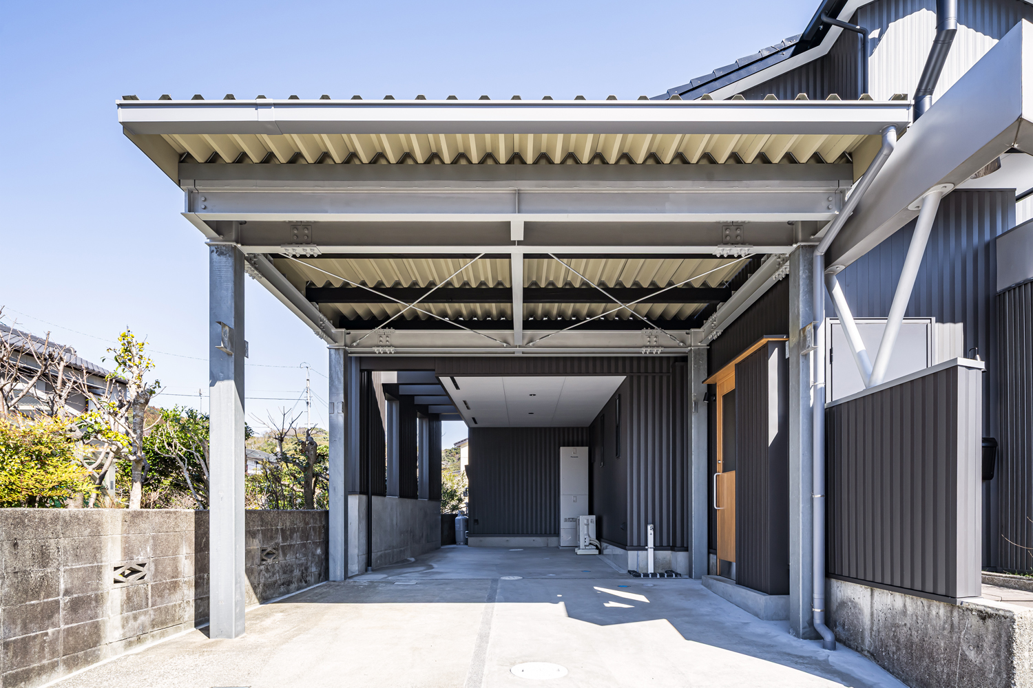 ピロティ状のインナーガレージの拡張を行いながら、構造補強も兼ねる設計とした