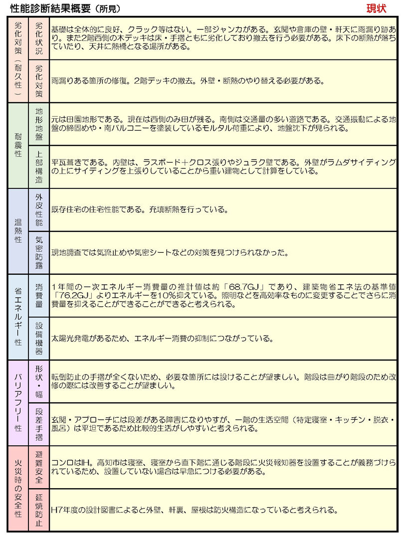 改修前:住まいの診断レポート(性能診断結果概要シート)