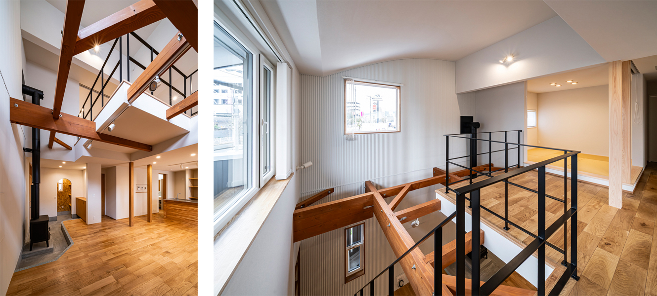 吹抜け空間の先は