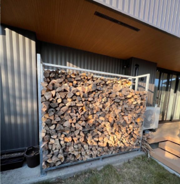 薪置き場は大きめにスチール角パイプで製作した軽四2台で3往復してこの量です。10日ほどで前列の半分ほど使ったそうです。