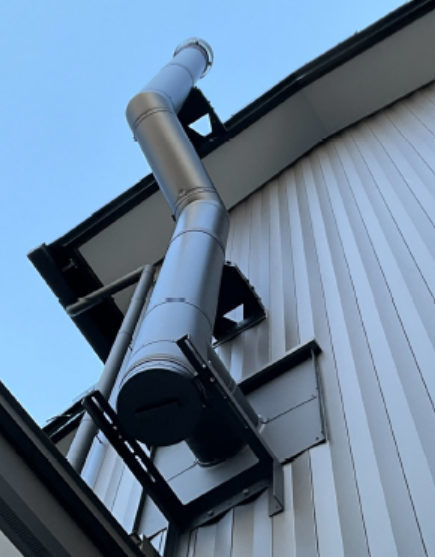 薪ストーブの背後の仕上げは特定不燃材 ガルバリウムスパンドレル ZiG タニマットホワイト