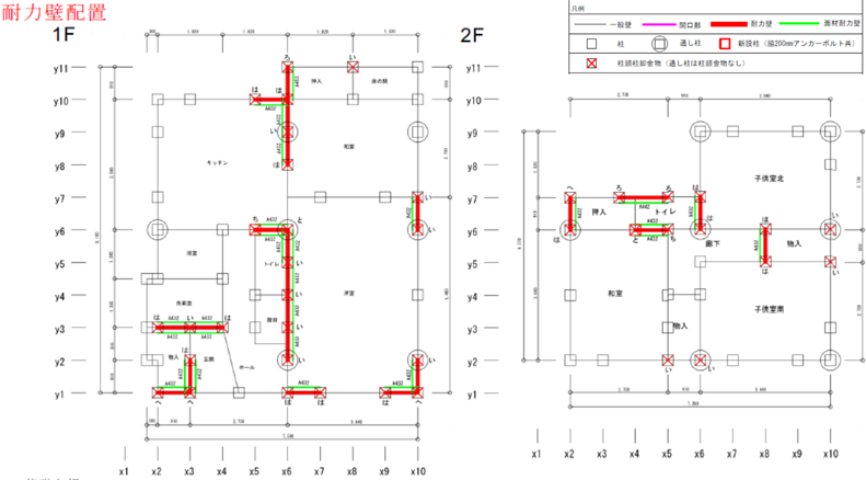 After(計画) 図:事例№169 耐力壁(ホームズ君耐震診断Pro Ver.5使用) |