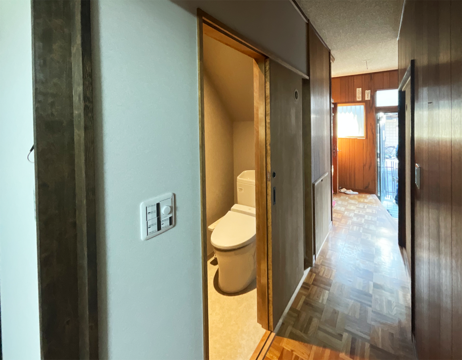 現在、母と長女の二人暮らしで、母はシルバーカーを利用している。来春、単身赴任の二女と男児2人が加わり3世代世帯となることを機会に、耐震改修とトイレ等のリフォームが主目的である。